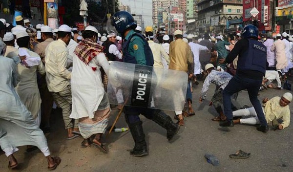 ভাস্কর্য তৈরিকে কেন্দ্র করে শুক্রবার ঢাকার বায়তুল মোকাররম মসজিদ থেকে বের হওয়া একটি মিছিল পুলিশ ছত্রভঙ্গ করে দিয়েছে। শুক্রবার দুপুরে জুমার নামাজের পর বায়তুল মোকাররম থেকে কয়েকশ মানুষ ভাস্কর্য বিরোধী মিছিলে যোগ দেয়। মিছিলটি পল্টন এলাকায় পৌঁছালে পুলিশ সেটি ছত্রভঙ্গ করে দেয়। কয়েকটি ইসলামপন্থী সংগঠন এই বিক্ষোভের ডাক দিয়েছিল। আইন শৃঙ্খলা পরিস্থিতি নিয়ন্ত্রণের উদ্দেশ্যে পল্টন, বায়তুল মোকাররম, গুলিস্তান এলাকায় বিপুল সংখ্যক পুলিশ মোতায়েন করা হয়।