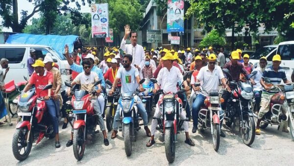 ৭ শতাধিক মোটরসাইকেলে নেতা-কর্মীর শোডাউন