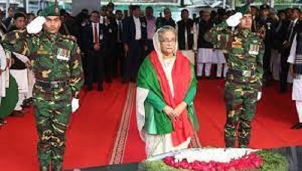বঙ্গবন্ধুর প্রতিকৃতিতে প্রধানমন্ত্রীর শ্রদ্ধা