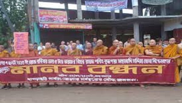 বৌদ্ধ ভিক্ষুকে হত্যার প্রতিবাদে খাগড়াছড়িতে মানববন্ধন