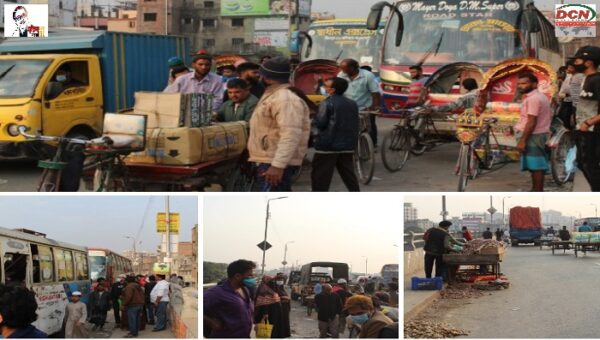 রাজধানীর দ্বিতীয় বুড়িগঙ্গা সেতুতে (বাবুবাজার ব্রীজ) অবৈধ স্ট্যান্ড পরিচালনায় দীর্ঘ যানজট
