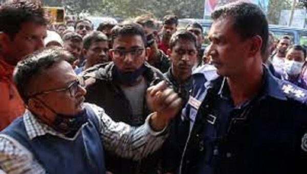 ঠাকুরগাঁওয়ে স্কুল ছাত্রকে হত্যার প্রতিবাদে মানববন্ধন কর্মসূচিতে পুলিশের বাধা।