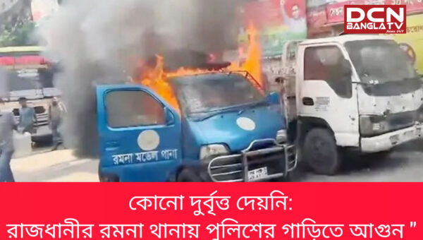 কোনো দুর্বৃত্ত দেয়নি: রাজধানীর রমনা থানায় পুলিশের গাড়িতে আগুন “