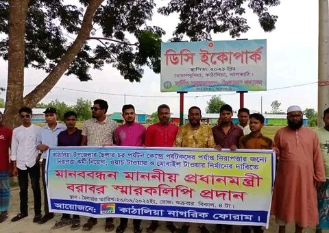 কাঠালিয়ায় পর্যটকদের নিরাপত্তার দাবিতে নাগরিক ফোরামের উদ্যোগে মানববন্ধন