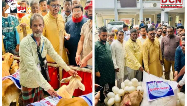 ভোলার লালমোহনে দুস্থ ও প্রান্তিক জেলেদের মধ্যে বকনা বাছুর ও জাল বিতরণ