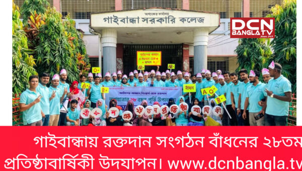 গাইবান্ধায় রক্তদান সংগঠন বাঁধনের ২৮তম প্রতিষ্ঠাবার্ষিকী উদযাপন।