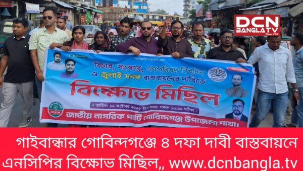 গাইবান্ধার গোবিন্দগঞ্জে ৪ দফা দাবী বাস্তবায়নে এনসিপির বিক্ষোভ মিছিল,,